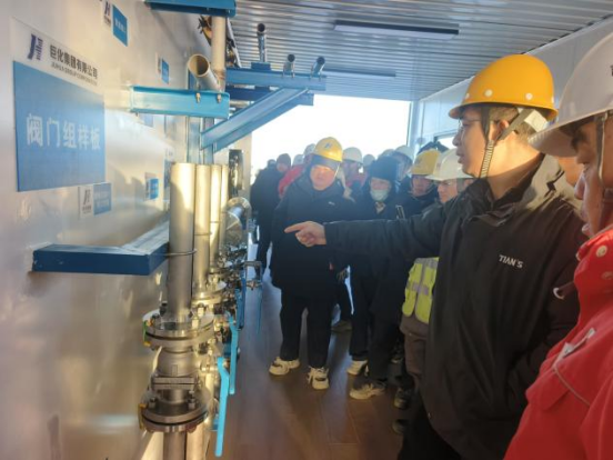 活動期間,各參建單位共同參觀了由天俱時集團建設的甘肅巨化實體質量樣板展示區,并于現場會議室開展了專題研討。天俱時甘肅巨化項目總指揮張帥圍繞安裝階段的質量控制標準、管理措施與協同機制進行了系統講解與深入交流,為后續安裝工程的高質量推進做好了策劃與準備工作。